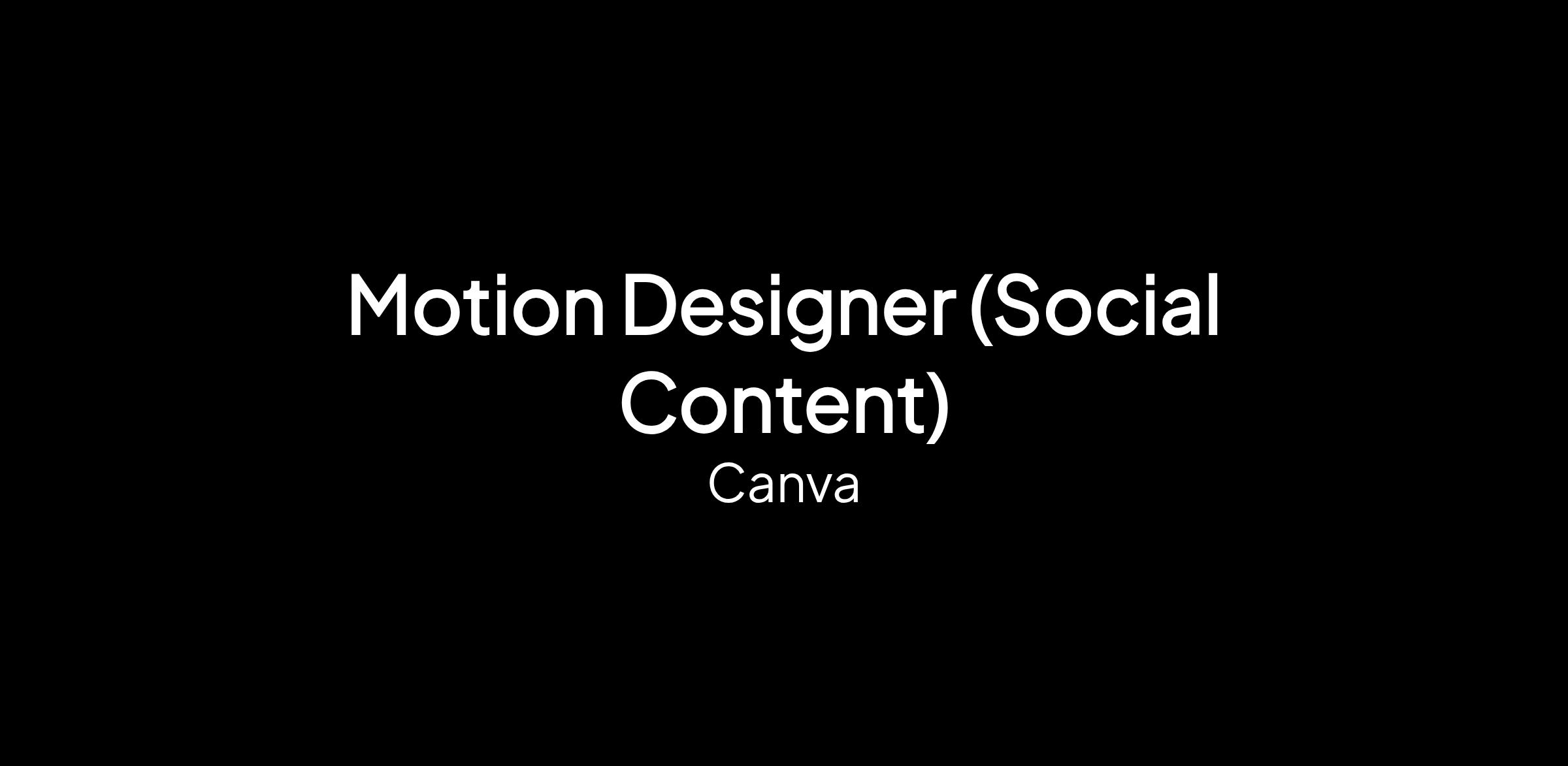 We’re looking for a Motion Designer (Social Content). A creative skilled in animation, motion graphics, and short-to-mid-form video storytelling. This role focuses on creating high-quality video assets, animation sequences, transitions, visual effects, and narrative-driven content for Canva’s content library.