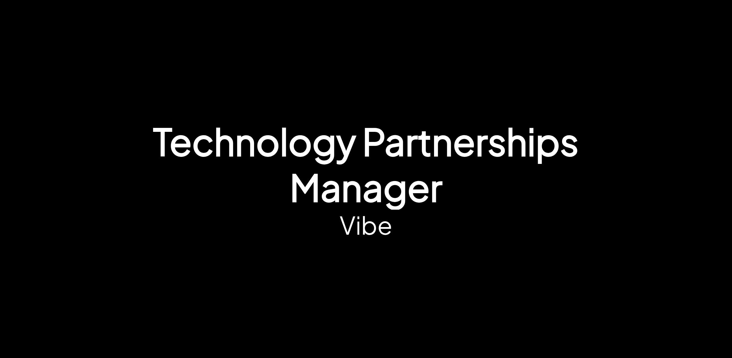 We’re hiring a Technology Partnerships Manager to own and grow Vibe’s ecosystem of technical integration partners across CRMs, CDPs, dashboards, attribution/measurement platforms, and emerging category solutions. This is a quota-carrying, revenue-focused IC role responsible for generating partner-driven pipeline, referrals, and co-marketing impact. You will inherit and grow a recurring book of ~30–40 tech partners, with clear targets around partner-produced revenue. You'll collaborate closely with Product, Engineering, Sales, Growth, and Marketing to ensure that Vibe’s integrations drive commercial value and become a core motion in our GTM engine.